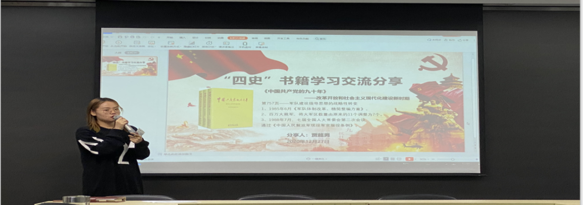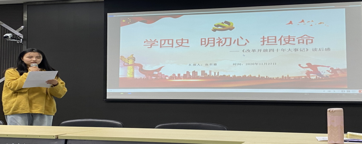 根据学院党委的布署,商贸管理学院党支部于7月16日进行了“四史”学习教育活动的动员,党员师生经过四个多月的自学和观看专题视频等方式,认真学习了党史、新中国史、改革开放史和社会主义发展史。从书籍中不断汲取强大精神动力,内化于心,外化于行。此次读书分享会分为“读、思、行”,“读”:分享人介绍自己读过的一本推荐书目中的主要内容;“思”:分享畅谈读书心得体会和思考感悟;“行”:结合实际谈对自己的影响和接下来的行动想法。分享会围绕这三个方面,每位教师党员和学生党员都分享了自己的感悟。