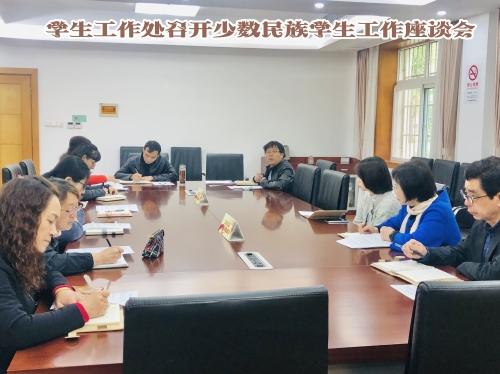 座谈会上,与会老师就学校少数民族学生组织发展、日常管理、学业等情况进行深入讨论。沈斌对少数民族学生工作整体情况做了汇报,并就少数民族辅导员职责,提出了四点要求:一是了解和把握少数民族学生的特点,探索有针对性的工作方法;二是加强少数民族学生日常管理工作;三是解决少数民族学生在学业、生活等方面的实际困难;四是做好对少数民族学生的关爱。随后,辅导员毕春堂分享了少数民族学生的管理经验,他表示要经常与少数民族学生谈心,走进他们的生活,拉近老师与学生之前的距离。新到岗的少数民族专职辅导员伊丽扎尔•伊马木也作了分享交流,她表示做好少数民族学生的工作,要以理服人,跟他们把道理讲透,同时要以情感人,关心他们的生活,只有情理交融,思想政治教育才会入心入脑。