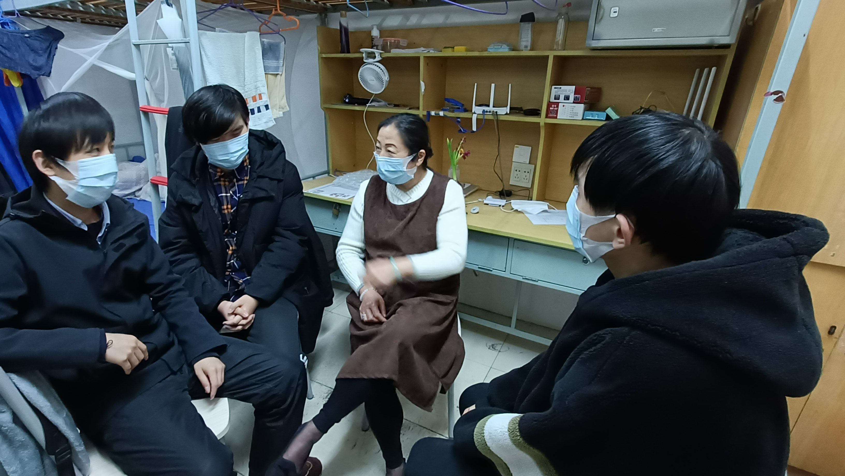 根据学校的疫情防控规定,学生们开启了宅在宿舍的网课生活。辅导员们深入学生宿舍,始终关心同学们的身体健康,了解并帮助解决学生在疫情期间所遇到的问题和困难。同时,辅导员们走访学生宿舍,监督跟进学生网课上课情况,与同学们谈心,关注他们的心理健康,及时进行心理疏导。