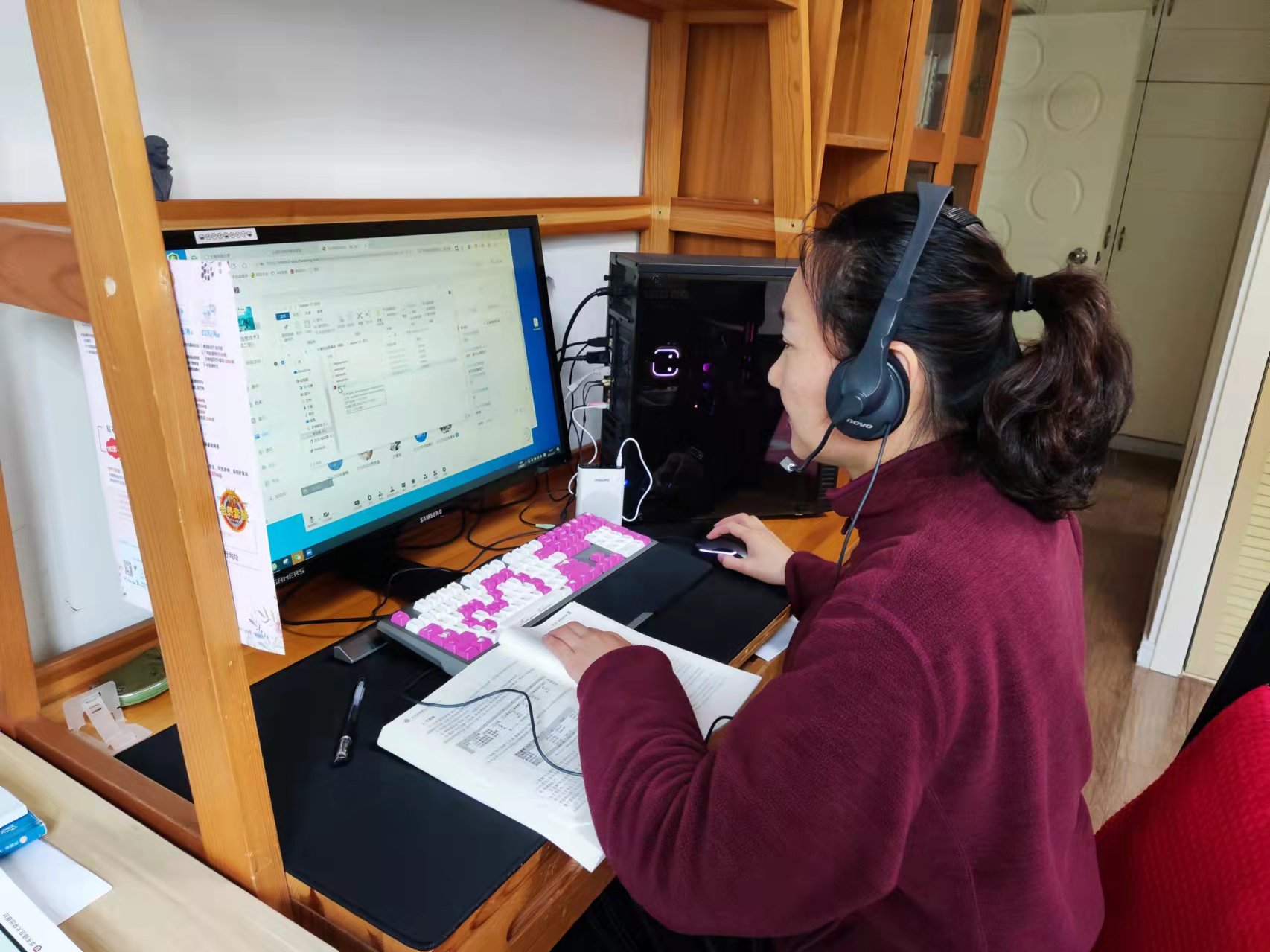 接到学校线上教学通知以后,基础课教学部主任陈宝冲组织全体教职工召开微信群线上视频会议,传达落实学校疫情防控工作要求,研究讨论部门疫情防控工作,会议上他要求部门全体教师首先要确保自身和家人的生命安全和身体健康,并对疫情防控期间的线上教学工作进行了周密安排部署。本次线上教学,有新老师是第一次使用,陈宝冲安排“老教师”发挥“传帮带”作用,确保线上教学“质量在线”。