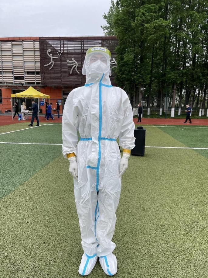 每一次校内核酸,都有他们两人的身影。烈日之下,包裹着防护服,汗水都要从防护服里渗透出来了,但三人依然一往无前,没有丝毫懈怠,尽职尽责。尽管课业繁重,他们在学校最需要的时候冲在第一线,用自己的行动守护全校师生安全,用态度书写了青春的责任和担当。