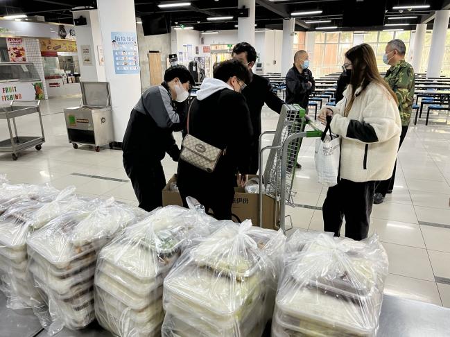 (党员辅导员们精准统计、细心分装为学生送餐)