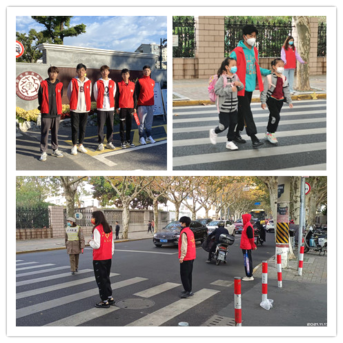 爱心护校志愿服务由“树人学院”育人实践团队负责开展,全年非节假日时间的早7:00-8:00高峰期,于塔城路278号校区门口路段及金沙路458号校区门口路段,护送小学生安全入校。无论是春雨夏雷,还是秋风冬雨,爱心护校六年来无间断无缺勤,持续为孩子们的安全保驾护航。
