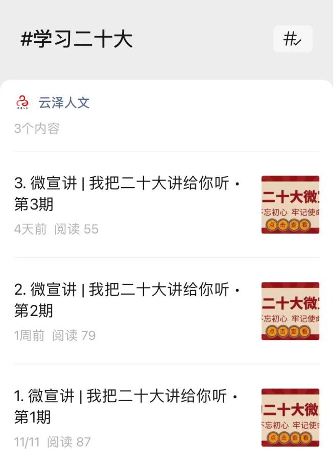 2022年11月11日起,在学院党总支带领下,推出《我把二十大讲给你听》微宣讲专栏