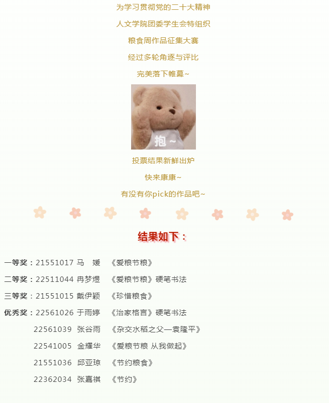2022年10月31日,人文与社会科学学院粮食周作品征集大赛落下帷幕