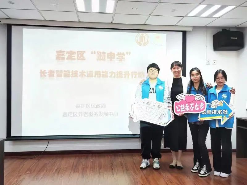 为弘扬中华民族敬老、爱老、助老的传统美德,进一步增强社区老年人对智能手机的了解与使用,推动老年群体更好的融入“数字生活”,10月27日,受嘉定区民政局和嘉定区养老服务发展中心邀请,在上海科学技术职业学院基础课教学部领导的大力支持下,教师须玉萍带领学校信息技术社成员陈澜、付宇宣、李振,组成“公益志愿者团”,前往外冈佳苑社区党群服务站开展嘉定区“随申学”长者智能技术运用能力提升行动。