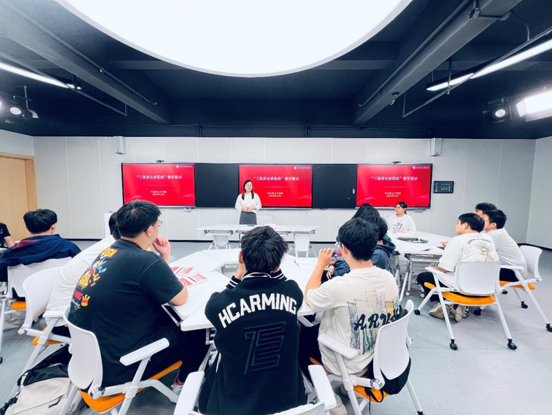 本次教学展示的主题是“习近平新时代中国特色社会主义思想概论”的第六专题——推动高质量发展,授课对象是智能制造学院24级智能控制专业学生。活动过程中,董忠云首先带领同学们回顾了推动高质量发展的相关知识,通过生动讲解和互动,让同学们对新时代“新”在哪里,新发展“新”在哪里,高质量“高”在哪里有了更深入的理解。