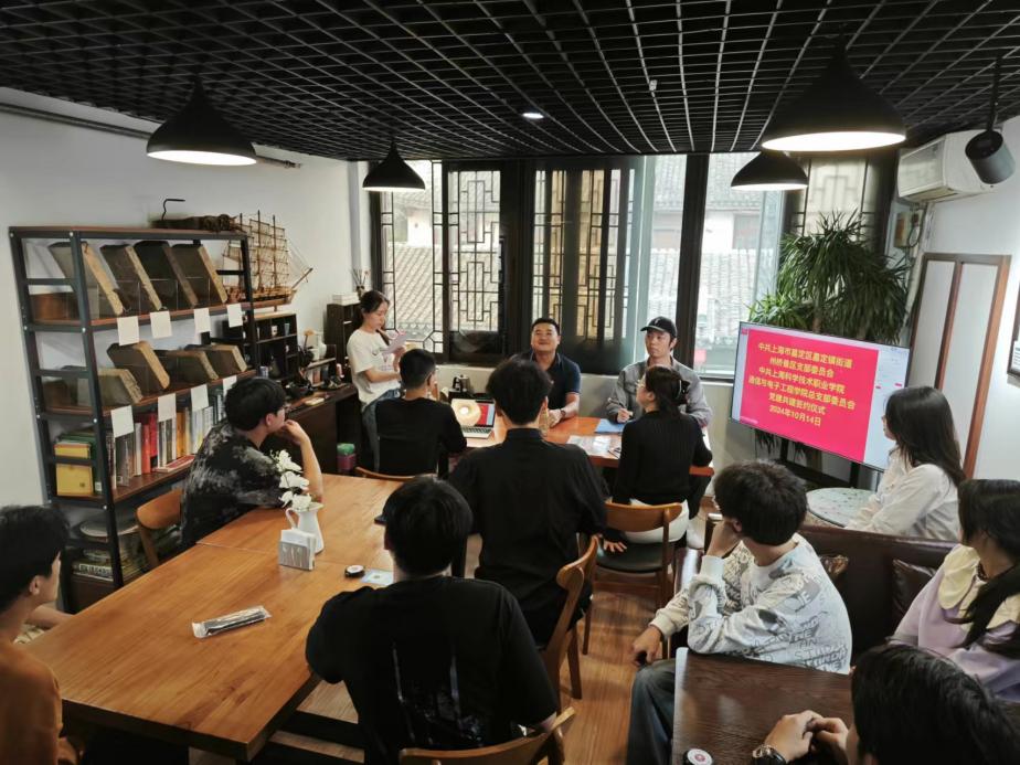 此次活动在嘉定镇州桥景区党建活动中心“书院咖啡”会议室举行,州桥景区党支部书记顾单纯、通信与电子工程学院党总支副书记许云峰、学院“树人”红色宣讲团负责教师陶云英以及宣讲团学生代表出席此次活动。