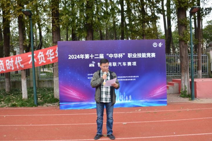 嘉定区中华职业教育社秘书长徐军在开幕式上作开场致辞。他首先对各位参赛选手、裁判员及嘉宾的到来表示热烈的欢迎,并对本次竞赛的举办表示高度的肯定和赞赏。他指出,智能网联汽车是当前汽车行业发展的重要方向,也是未来交通出行的重要变革力量。希望通过本次竞赛,能够进一步推动智能网联汽车技术的普及与发展,提高参赛选手的专业技能和职业素养,为培养更多适应未来社会发展需求的高素质技能人才贡献力量。