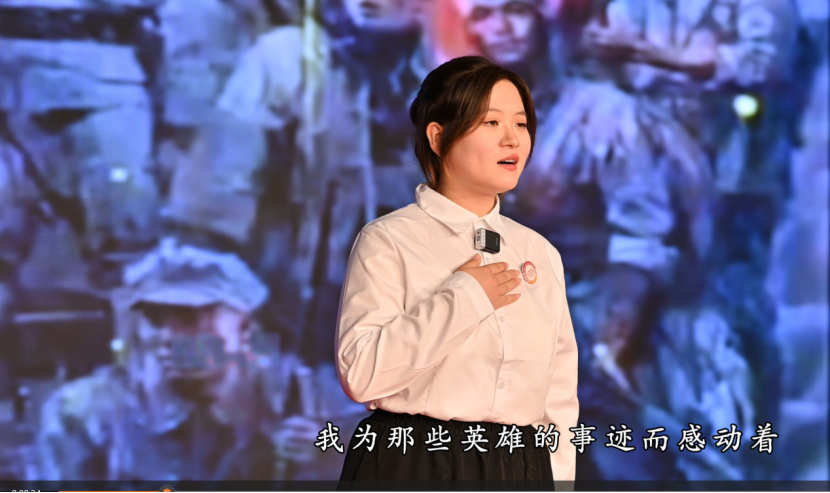 荣获上海赛区一等奖、全国三等奖的作品《不朽》,朗诵者张馨化,2023级艺术设计学院学生,学校“中国共产党人精神谱系”大学生宣讲朗诵团成员。《不朽》这部作品情感深沉且丰富,表达了对革命先烈的深切缅怀与崇高敬意。作者通过朗诵描述抗战英雄的故事,运用一系列具体的意象,生动地再现了战场的惨烈以及英雄的悲壮,仿佛将听众带回到那个烽火连天的岁月,使人们深刻感受到先烈们为了国家解放和民族独立而英勇无畏的奉献精神。通过歌颂抗战英雄面对死亡毫不畏惧、面对困难迎难而上、面对入侵奋勇抗击的精神风貌,展现了英雄们的伟大品质,强调了对英雄精神的传承与发扬,让人们深知,抗战英雄们的精神如同一座巍峨的灯塔,代代相传,照亮后人前行的道路,激励着人们铭记历史、铭记英雄。