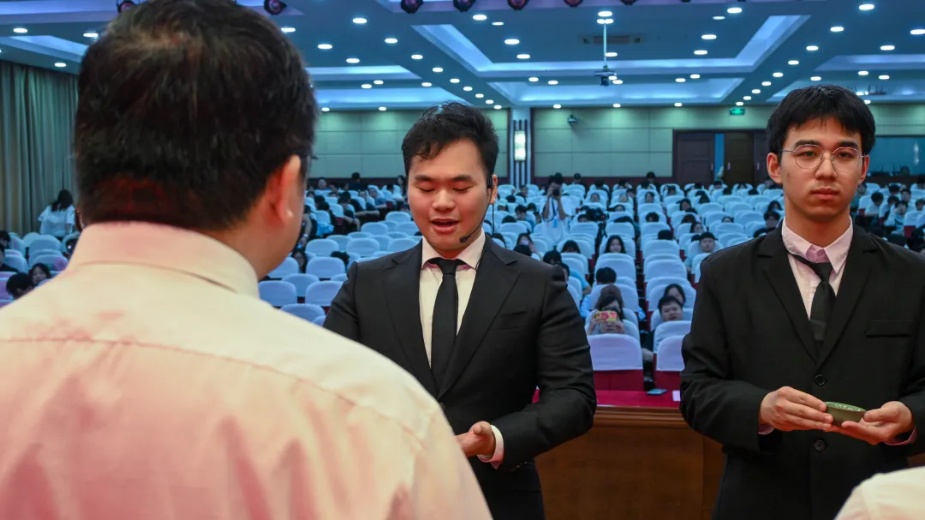 2025届毕业生李文强等六位学生代表,手捧茶盏,列队向师长奉茶。当学生将茶盏双手奉上,在指尖触碰的温度里,是“授业解惑”的日夜坚守,每一盏茶,都盛满了对“科院守护者”的敬意。