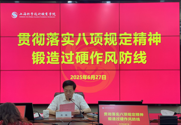 周胜强调,作风建设永远在路上,只有进行时,没有完成时。贯彻落实中央八项规定精神,锻造过硬作风防线,是学校当前和今后一个时期的重要政治任务。全校上下要以高度的政治责任感和使命感,切实把思想和行动统一到党中央的决策部署上来,统一到学校党委的工作要求上来,携手共进,砥砺前行,共同谱写上海科学技术职业学院高质量发展的新篇章!