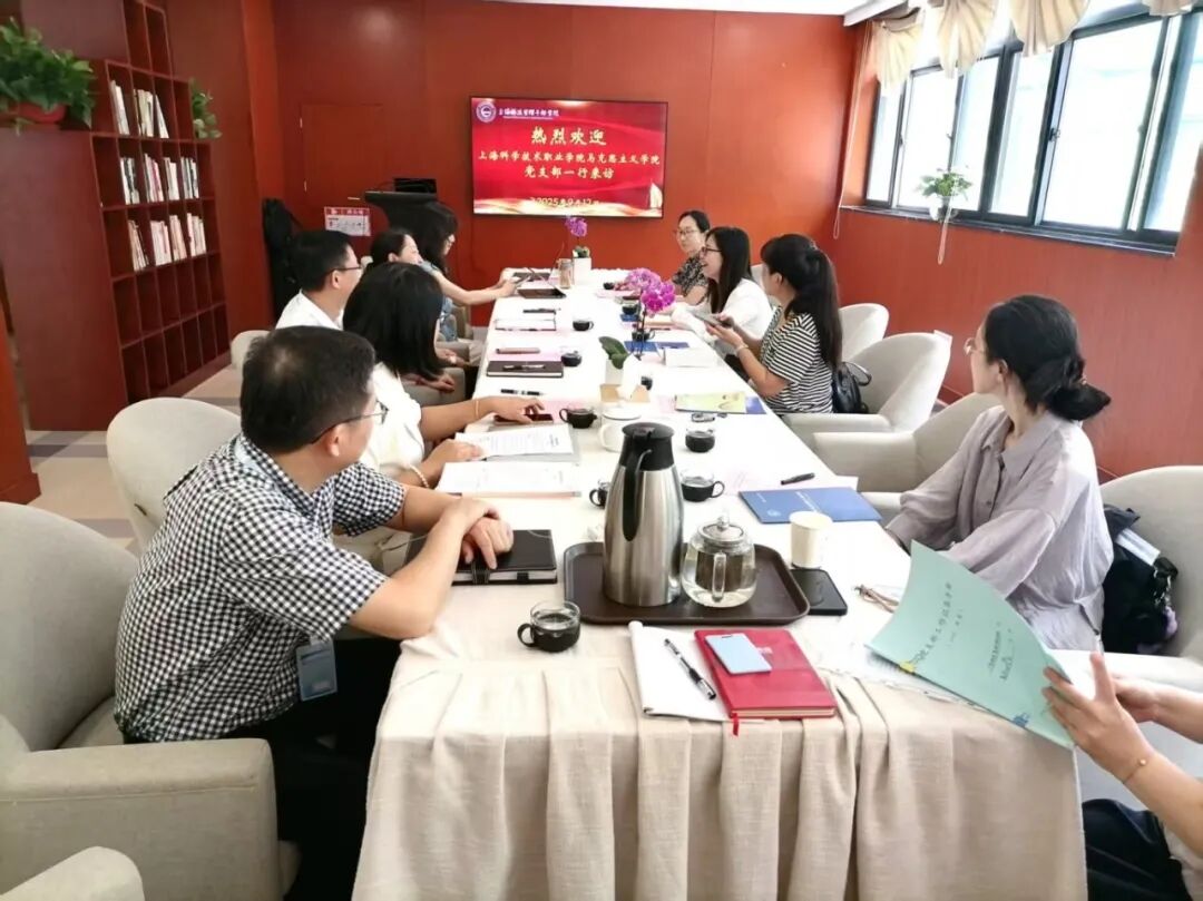 为深入贯彻落实习近平总书记考察上海重要讲话精神,推动党建与业务深度融合,2025年9月12日下午,我校马克思主义学院党支部与上海科技管理干部学院教学研究部党支部举行联组学习暨共建签约仪式。我校马克思主义学院党支部书记、院长王依娜和支部全体党员,上海科技管理干部学院党委委员、副院长、教学研究部主任顾玲琍教授,党支部书记、教学研究部副主任顾承卫教授和支部全体党员参加联组学习。活动在上海科技管理干部学院举行。