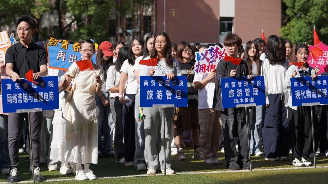 当旗手们绕着操场奔跑,20面红旗紧随其后,这不仅是青春的律动,更是新生们“向未来出发”的宣言!