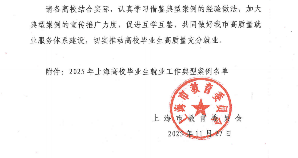 近日,上海市教育委员会公布了2025年上海高校毕业生就业工作典型案例名单,我校通信与电子工程学院梁宇琳申报的《思想引领促就业,精准服务育新人——高职院校毕业生就业育人实践》案例成功入选个人案例,彰显了学校在就业育人领域的示范作用,为毕业生就业工作提供可借鉴的经验。
