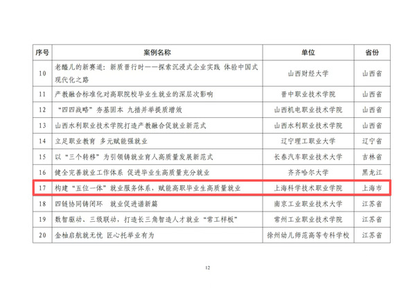 近日,高校毕业生就业协会公布了2025届毕业生就业创业工作典型案例入选名单,我校申报的《构建“五位一体”就业服务体系,赋能高职毕业生高质量就业》(集体案例)成功入选。此次入选是我校紧密对接上海“五个中心”“四大品牌”建设需求,以“精准对接、数字赋能、协同育人”为核心理念,持续深化就业服务改革的重要体现,也为职业院校推进毕业生高质量就业工作提供了可复制、可推广的实践路径。