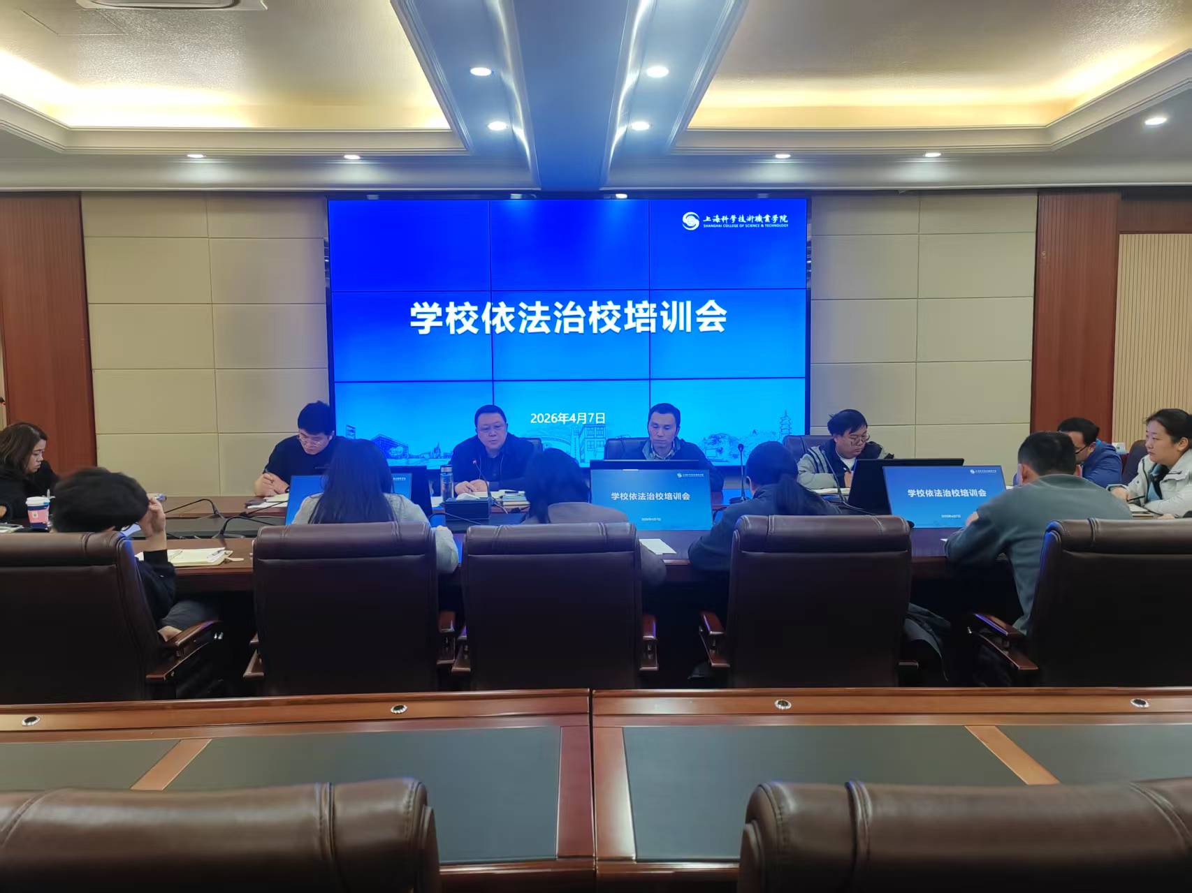 为全面提升学校依法治校工作水平,规范校园治理流程,切实保障师生合法权益,4月7日,学校在第二会议室召开依法治校专题培训会。学校党委副书记、常务副院长许金如,党委委员、副院长曾喜平出席会议,各二级学院书记、副书记及相关职能部门人员参加。会议由党委宣传部部长、办公室主任沈斌主持。