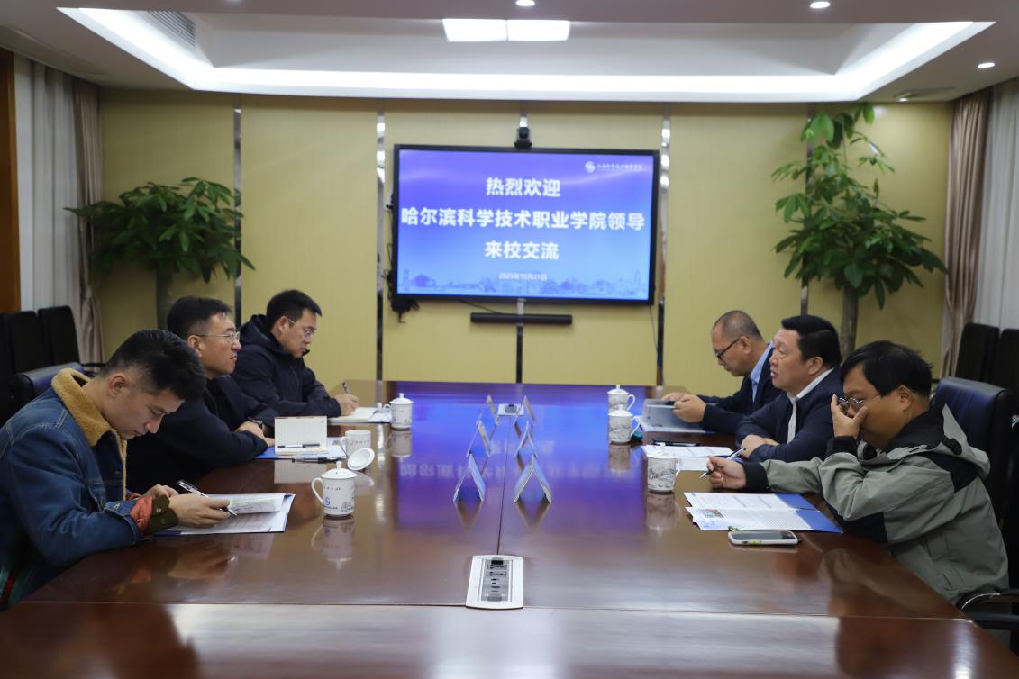2025年10月21日上午,哈尔滨科学技术职业学院党委书记解海一行莅临我校考察交流。我校党委副书记、常务副院长许金如,学校党委委员、宣传部部长、党政办主任沈斌,通信与电子工程学院院长宋国利等陪同接待并参与座谈。