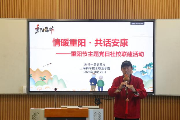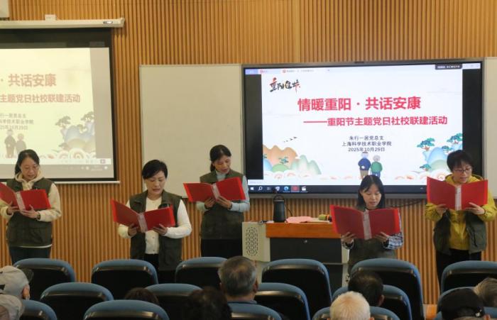 2025年10月29日,在上海科学技术职业学院闵行校区隆重举行了一场以"四方共建聚合力 情暖重阳践初心"为主题的重阳节敬老活动。本次活动由中共上海科学技术职业学院国际教育学院支部委员会、艺术设计学院总支部委员会联合朱行第一居民区总支部委员会、中共上海伟东海船有限公司联合支部委员会共同发起,是深化"社—校—企"党建联动、弘扬中华民族尊老敬老传统美德的重要实践。