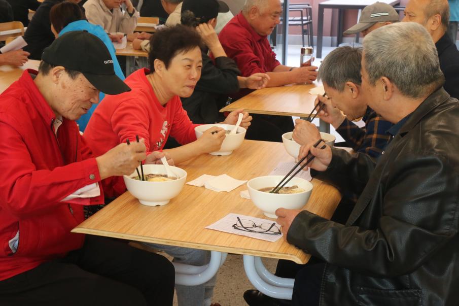 演出结束后,学校志愿者细心引导老党员前往食堂就餐。一碗碗热气腾腾的"重阳长寿面",承载着浓浓的敬老情谊。志愿者们不仅全程服务,更与老人亲切交谈,以实际行动践行"敬老爱亲"的传统美德,让老人们在温馨的氛围中感受到了来自学校与社区的深切关怀,展现了我校学子良好的精神风貌与社会担当。