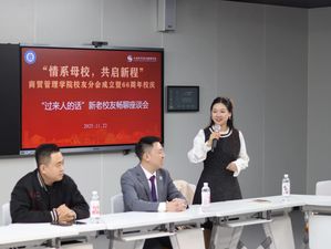 接着,刘年年书记回忆自己的工作流程,讲述学校成就与共建故事,鼓励大家多多参加各种比赛,在实践中取得优异成绩;张院长则强调母校是我们的家,应共享资源,共同助力电商、社工等一流专业发展;商贸管理学院团委学生会干部也积极提出专业困惑等问题,校友们纷纷给出毕业实习建议;李丽群院长还提到了商贸节种类丰富,介绍了电商近年发展,通过直播间进一步推广学校特色活动。热烈的讨论中,经验与感悟在实际间流淌,一句句肺腑之言,让时光仿佛回到了青涩的学生时代。