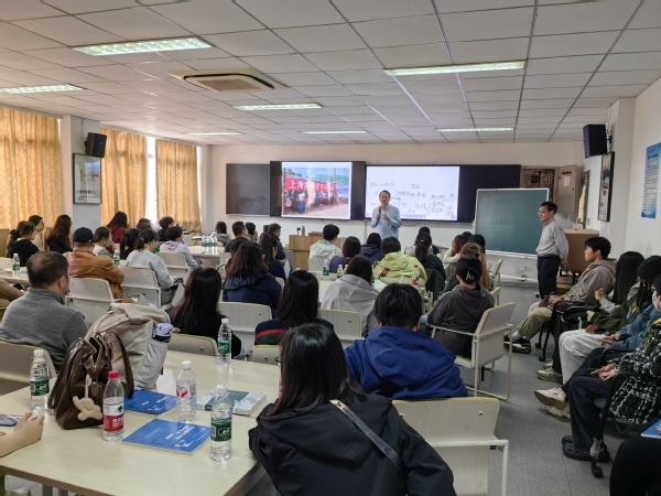 2025年11月6日上午,商贸管理学院社会工作专业迎来了一场别开生面的交流活动。普陀区长寿路街道38名骨干社区工作者受邀走进校园,与三年级高本贯通班的社会工作专业学子展开了一场主题为“社工遇见社工”的深度对话。活动由社会工作专业教师陆飞杰主持,专业主任孙鸿平老师主讲,现场气氛热烈,互动频繁,取得了良好的育人实效。