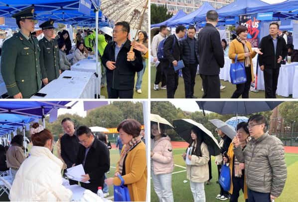上海市就业促进中心主任周国良,嘉定区人力资源与社会保障局副局长丁佳,嘉定区就业促进中心领导沈继良、唐伟、叶本喜,嘉定镇街道办事处副主任章华,嘉定镇街道社区事务受理服务中心主任高松杰,学校党委副书记、院长陈斌及校领导班子成员先后深入招聘会现场,了解毕业生求职意向、企业对人才的招聘需求和学生的应聘面试情况。
