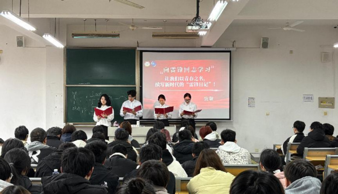 3月13日至14日,在马克思主义学院院长王依娜和居子钰老师的共同指导下,由宣讲朗诵团社长、智能制造工程学院学生刘易麟牵头策划,通信与电子工程学院学生徐隽彦带领宣讲团成员——商贸管理学院的崔思宇、通信与电子工程学院的朱珂欣与商贸管理学院的许馨文等几位同学,走进班级,开展“弘扬雷锋精神、‘雷锋日记’进课堂”主题活动。