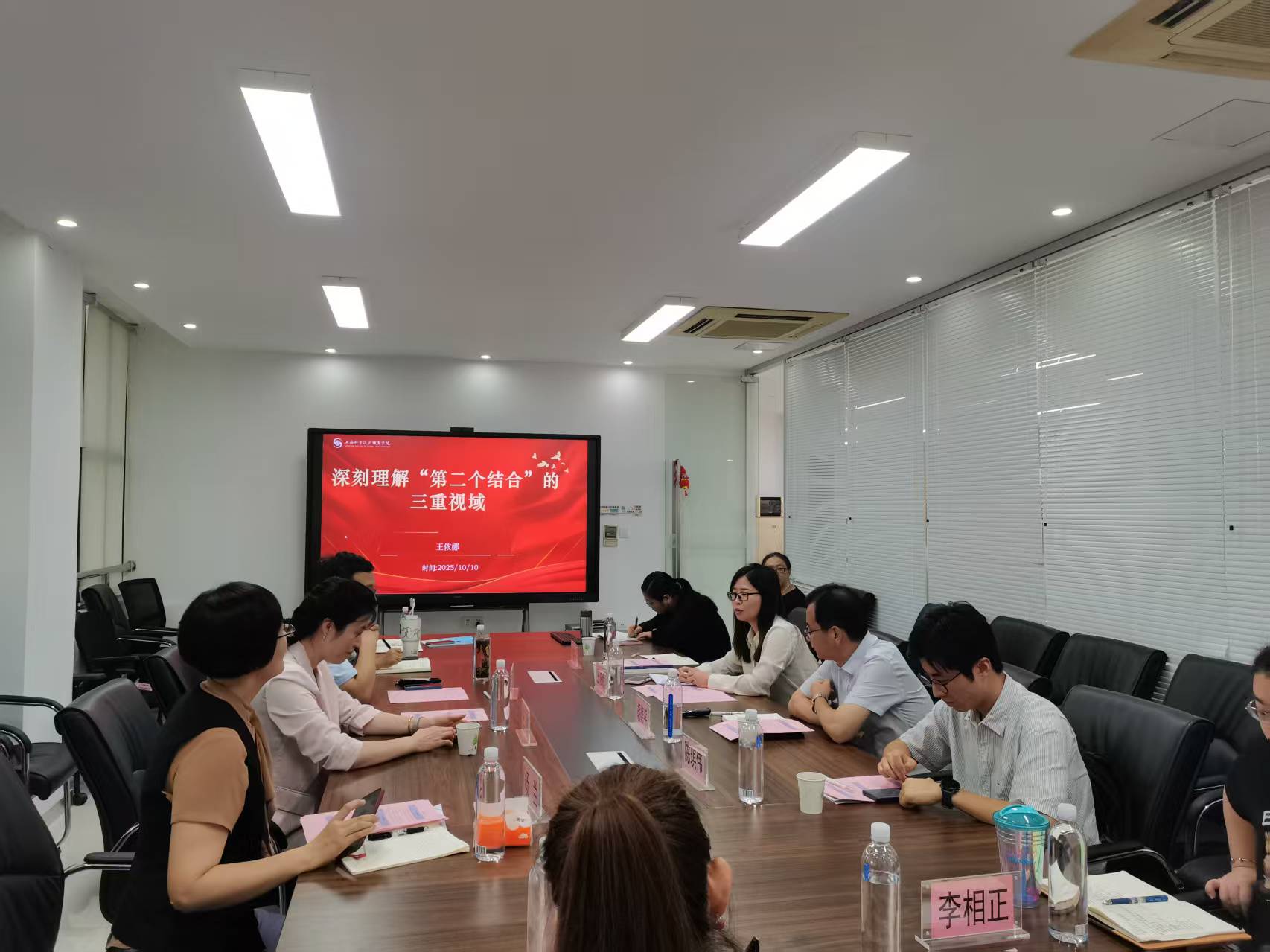 王依娜主持了集体备课会第二阶段研讨交流环节,并作题为《深刻把握“第二个结合”的三重视域》的主题报告。王依娜从百年党史、文化契合和文明意义三个维度,系统阐释了“第二个结合”的历史逻辑、理论内涵与实践路径,强调“第二个结合”不仅是马克思主义中国化时代化的关键环节,更是推动思政课内涵式发展的重要抓手。刘青玉以《党史在高职〈毛概论〉〈习思想〉课程教学中的融入与运用》为题作交流发言。她结合高职院校教学实际,分享了将党史资源有机融入思政课程的教学设计与实践案例,展现了科技马院教师在思政课教学改革中的积极探索与扎实功底。