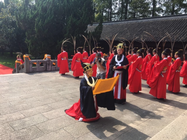 本次祭孔大典由嘉定镇街道、上海科学技术职业学院、嘉定博物馆、上海炎黄文化研究会和上海炎黄文化研究会孔子文化专业委员会共同举办。释典礼上,嘉定区人民政府嘉定街道党工委副书记沈杰先生、党工委委员虞为民先生、我院商贸管理学院院长胡晓晖老师、上海嘉定区博物馆馆长邵辉女士、孔子专业委员会代主任余志平先生和上海炎黄文化研究会秘书长潘为民先生等分别向至圣先师——孔子敬献花篮。全体来宾庄然肃立,整理衣冠,面谒大成至圣先师孔子行跪拜礼。通过网络提前报名的市民,当天也怀着对传统文化的喜爱之情,全程观摩了此次的秋季祭孔大典。