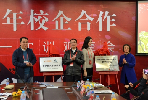 随后,遵义职业技术学院谭晓东老师宣读了教育部陈宝生部长给学生的回信。接下来,我院电子商务专业主任杨伟强做题为《电子商务骨干专业建设方案》的汇报,他介绍了专业在上海市特色院校建设中的举措和成效,以及在《创新发展行动计划》中的发展规划。会上,上海市跨境电子商务行业协会秘书长夏世锋女士及香港万威贸易有限公司总经理张珍女士为大家带来了最新的跨境电商数据及校企合作案例分享。针对跨境电商人才培养成本过高、学校人才培养和企业人才需求不匹配等问题,夏秘书长提出,要把握跨境电商企业的发展态势和人才的需求,搭建跨境电商人才培养的 “政、 校、 行、 企” 四位一体合作发展平台,培养企业需要的从业人员。阿里巴巴-百城千校负责人卢静坦言,虽然百城千校已经培训了300多所院校,有些院校也开始尝试承接企业业务,但岗位单一,无法为专业教师提供教学数据及教改参考,真正能承接企业业务的只有上海科学技术职业学院,值得其它院校学习和借鉴。3131电子商务学院饶晴丽老师回顾了与上海科学技术职业学院5年的合作历程,分享了专业是如何立足于行业需求确定专业岗位方向,以及促进教学内容和教学方式与生产实践对接的经验。大会最后,由学院党委书记兼院长庄顺根、上海市跨境电子商务行业协会秘书长夏世锋、阿里巴巴百城千校负责人卢静及商贸管理学院院长胡晓晖共同为“跨境电商人才培育基地”和“阿里巴巴全球速卖通大学合作院校”揭牌。