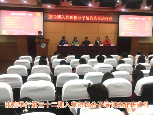 4月14日下午,我院第32期党校入党积极分子培训班开班典礼于五楼报告厅隆重举行。典礼由学生工作处处长吴育红主持,党委副书记、副院长周财宝及各院系党支部书记出席开班典礼。