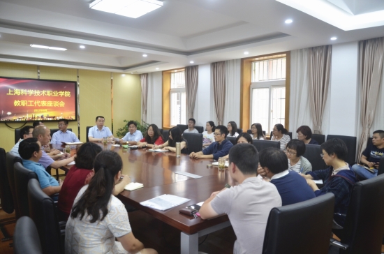为贯彻落实全国和上海高校思想政治工作会议精神,把脉教师的思想动态,学院于6月16日下午召开了教职工代表座谈会。学院董事长朱建新、院长庄顺根、党委书记王云飞、院党委委员、工会委员、学院的区人大代表、政协委员及教师代表们出席了会议。会议由党委副书记周财宝主持。
