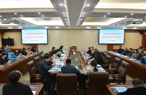 会上,市教委、市语委领导及各位专家和学院与会人员开展了互动、交流,学院党政领导、语委委员对评估专家的现场提问作了积极的回应。专家组对学院语言文字评估工作的材料准备、领导重视两个方面,给予了一致的肯定与高度的评价。会后,专家组分别召开了语委成员和教师、学生两个座谈会,开展了问卷调查,对学生进行了语言文字知识测试,并巡视校园,审阅支撑材料,查看学院网站。