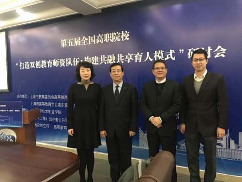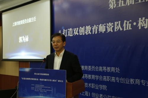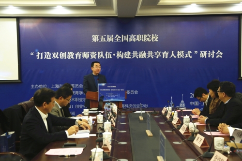 2017年12月16日,由上海市教委高教处、上海市高等教育学会高职高专创业教育专业委员会主办、我院承办的第五届全国高职院校“打造双创教育师资队伍,构建共融共享育人模式”研讨会在学院第二会议室成功举行。上海市教委副主任郭为禄出席研讨会并讲话。市教委高教处、学生事务中心、职教处有关领导和来自上海、北京、天津、江苏、贵州等地各高职院校负责创新创业教育的60余名领导、教师参加了本次研讨会。