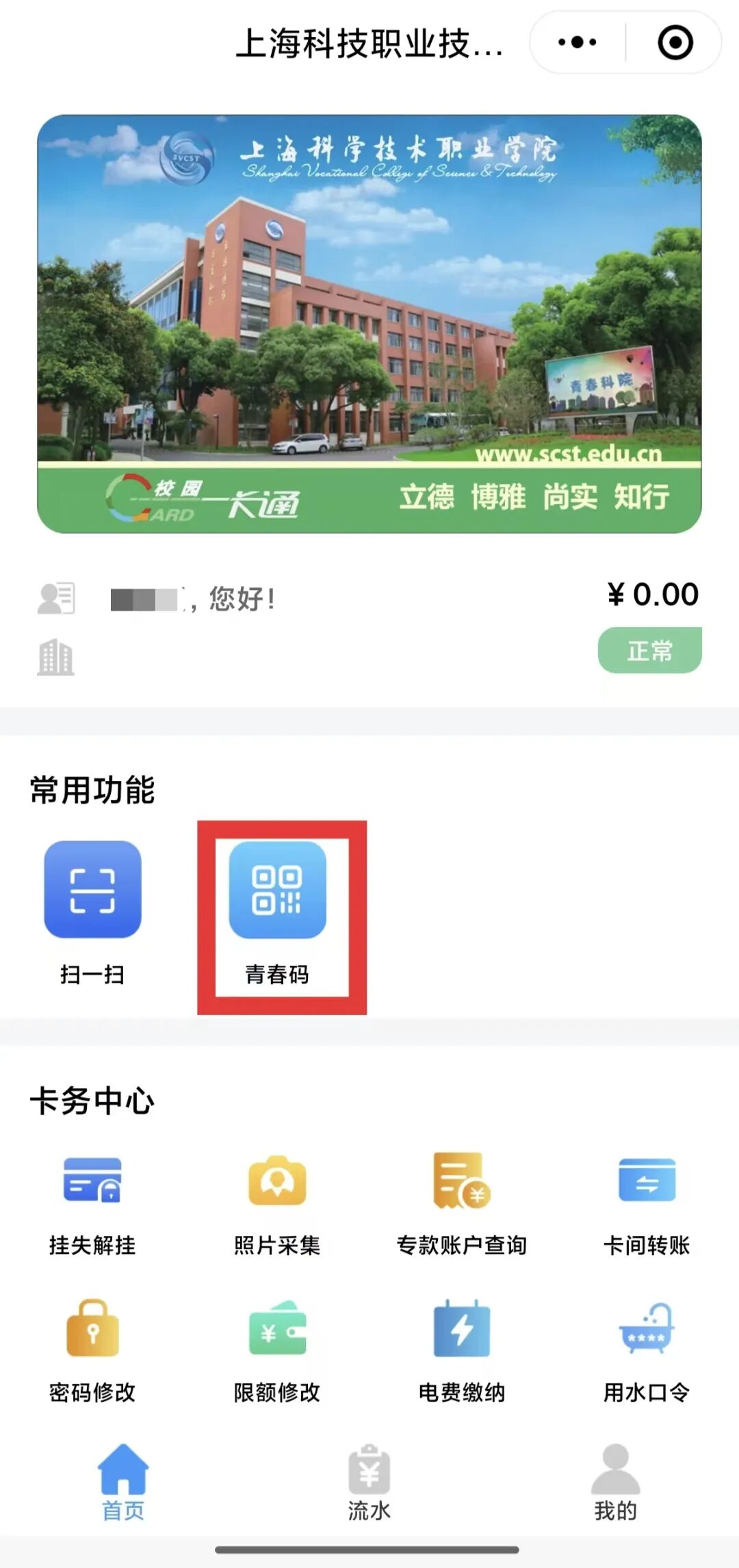 1、扫描小程序二维码,完成登录操作(校园卡初始密码默认是身份证后六位,字母用0替代),进入“i在科院”小程序。