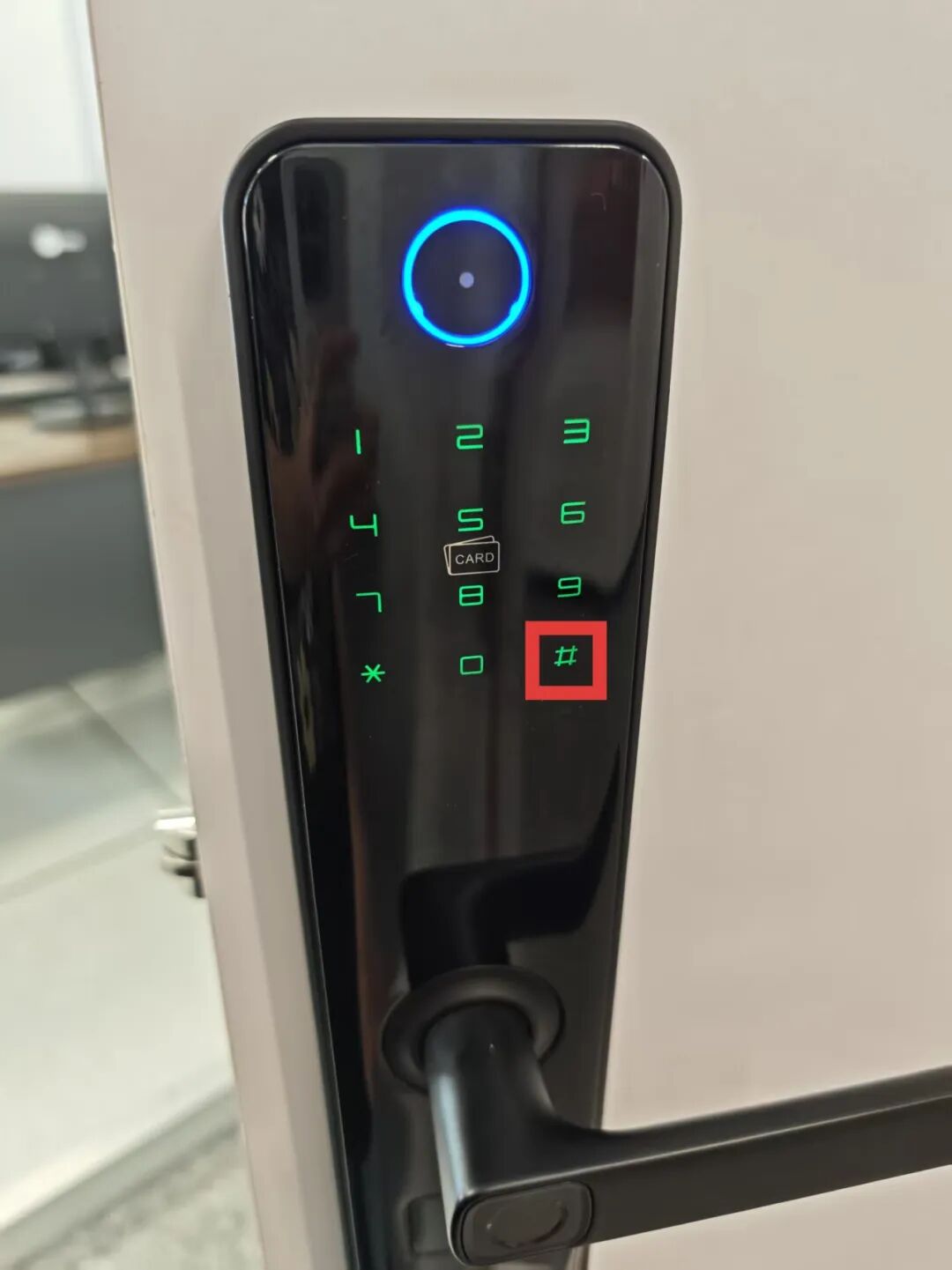 3、此时按#键唤起智能门锁扫码头,出示青春码对准门锁,即可进行扫码开门。