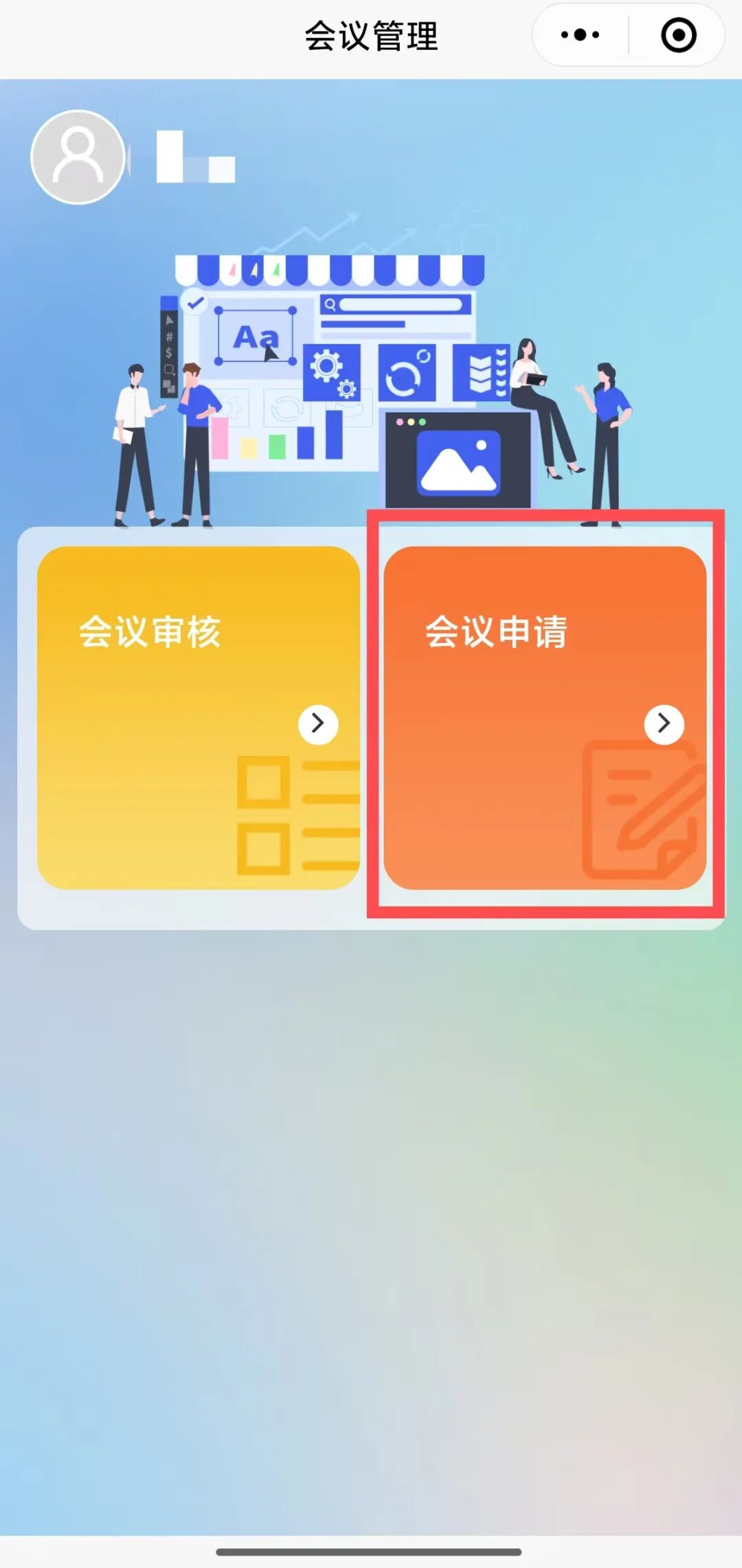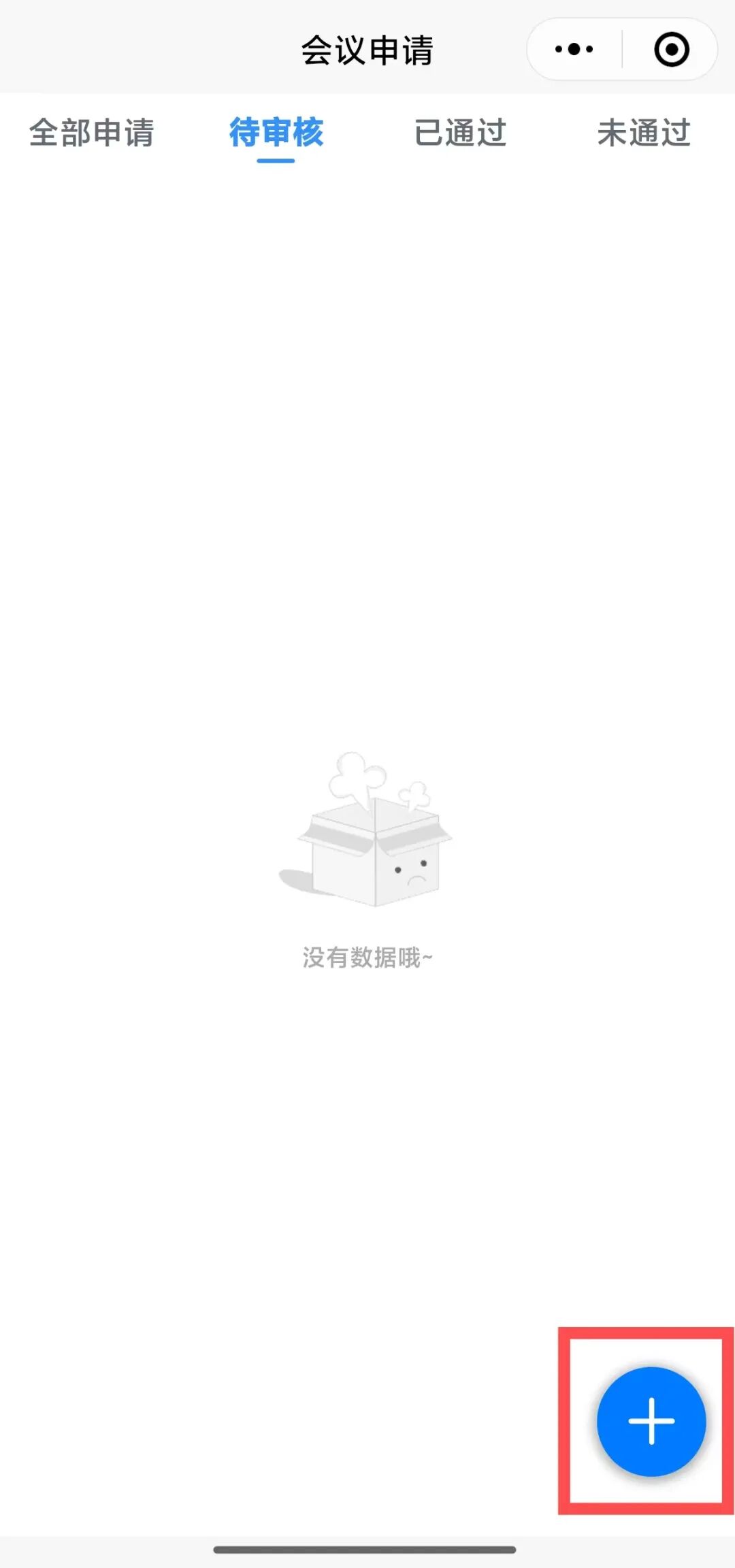 2、选择“会议申请”,并点击界面右下角的加号以添加申请。