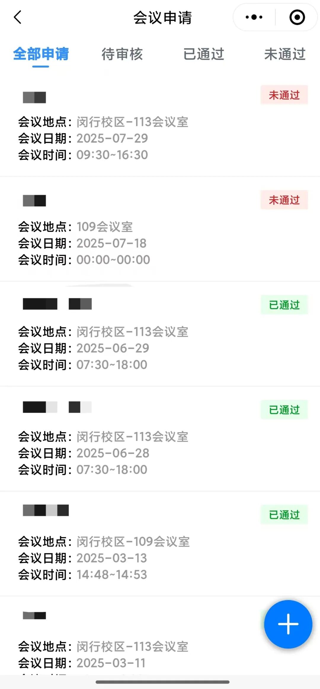 4、提交完的会议申请会进入审核流程,可以在会议申请界面中的查看所申请会议的审核情况。