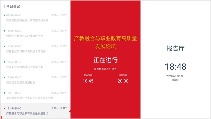 若审核通过,会议室门口的智慧屏幕则会在相应的时间段显示对应的会议信息。