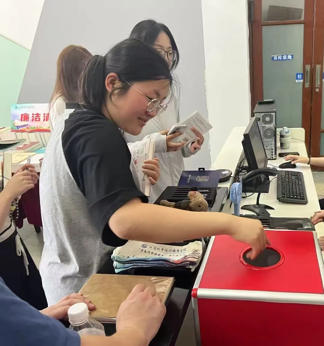 师生们根据自己的兴趣在书展现场借阅图书,完成借阅手续后还可参与抽奖,领取笔记本、笔袋、笔、玩偶等纪念品。活动现场热情高涨,气氛热烈非凡。