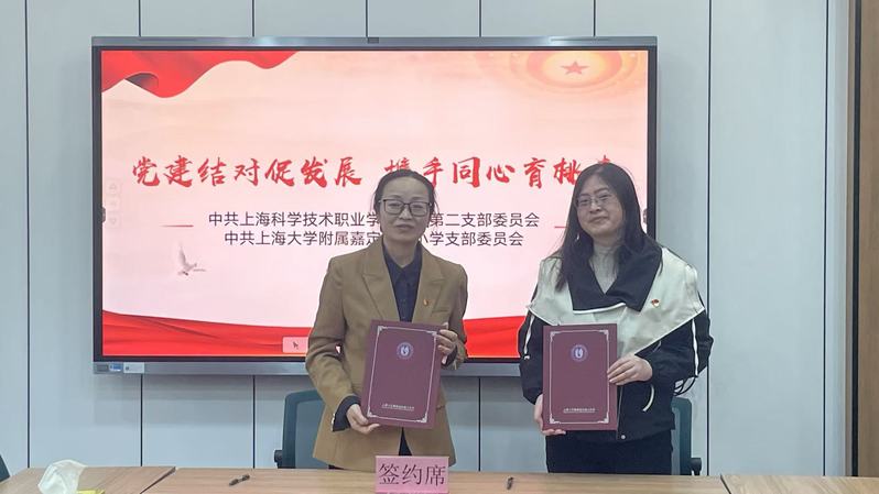为深入推动党建工作与业务工作深度融合,积极探索“体教融合”与“大中小学思政教育一体化”建设的创新路径,4月7日下午,上海科学技术职业学院机关第二党支部与上海大学嘉定附属留云小学党支部在学校会议室隆重举行“党建+体育”结对共建签约仪式。