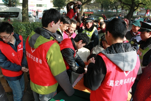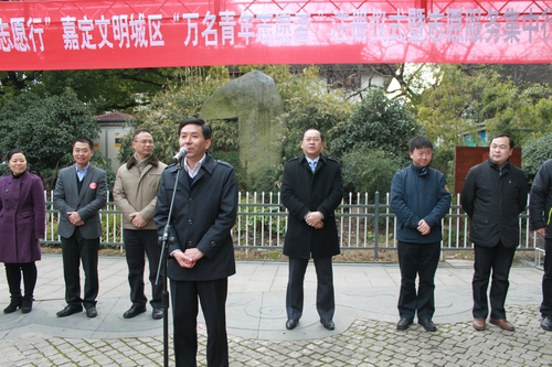 2012年3月2日上午,由嘉定区文明办、嘉定团区委联合主办的“青春聚疁城,文明志愿行”嘉定文明城区“万名青年志愿者”注册仪式暨纪念学习雷锋活动50周年志愿服务集中行动在登龙广场顺利举行。中共嘉定区委副书记刘海涛,中共嘉定区委宣传部部长林峻,团市委党组成员、市社区青少年事务办主任周建军,《中国青年报》上海记者站站长、中国(上海)高校传媒联盟秘书长周凯,嘉定团区委书记董爱华,团市委地区部副部长邬斌,区文明办副主任金芳以及同济大学、上海大学团委的相关领导出席活动。仪式由团区委副书记朱虹主持。各路青年志愿者代表、基层团组织负责人近100人参与了现场学雷锋行动,当天累计服务逾500人次。