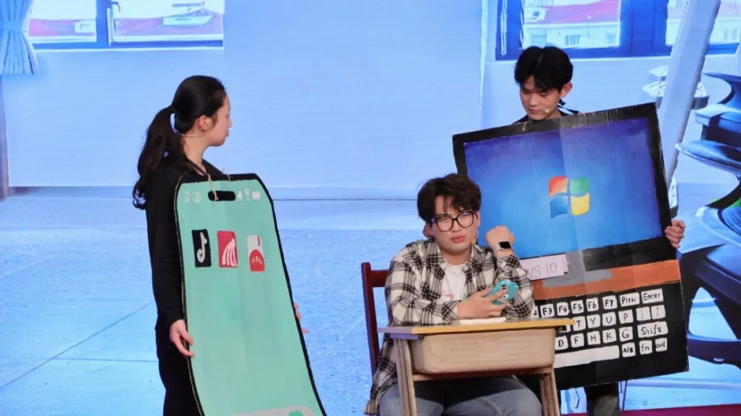 该剧由艺术设计学院指导,学生自编自导,以真实校园生活为素材,用拟人化创意展现手机、电脑与书本的趣味交锋,生动诠释了我校“三无课堂”的建设要求,传递了文明校园建设中“合理利用工具、坚守学习初心”的核心理念,引发全校师生广泛热议。