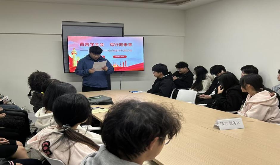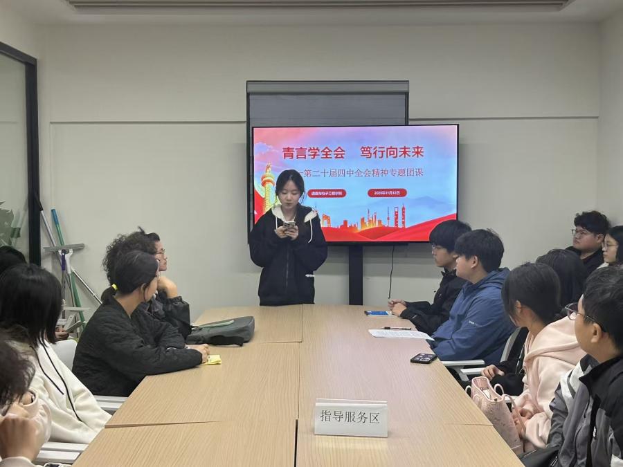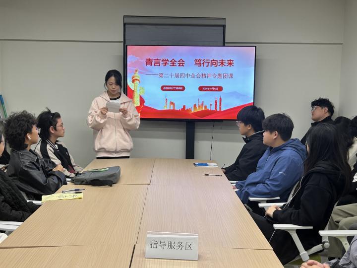 为深入学习贯彻党的二十届四中全会精神,引导广大青年坚定理想信念、明确使命担当,通信与电子工程学院团委于2025年11月12日在青稞学生社区组织开展了“青言学全会,笃行向未来”二十届四中全会精神专题团课。