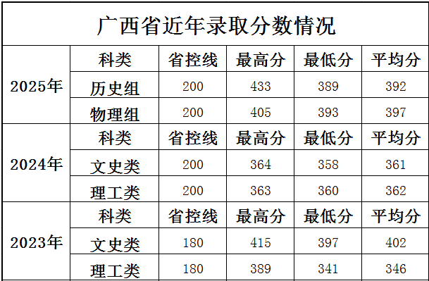 历年各省录取分数情况
