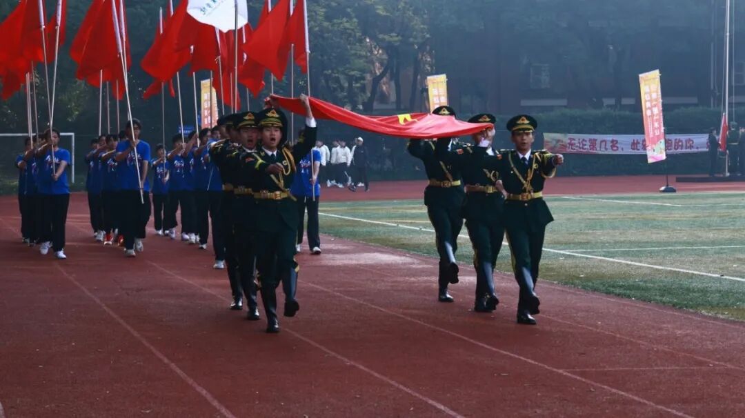 国歌声庄严奏起,五星红旗冉冉升起。伴随着激昂的运动员进行曲,国旗队、红旗队、各学院方阵、教工方阵依次入场,身着鲜亮的运动装,高喊着激昂的口号,展现出科院师生的自信热情和精神风采。