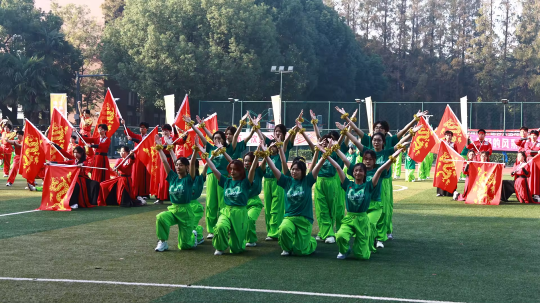 开幕式上,来自基础课教学部的《民族武韵,潮健新篇》表演燃动全场!这场融合表演,以武术之刚劲碰撞健美操之韵律,生动诠释了新时代大学生乐观拼搏的精神风貌。